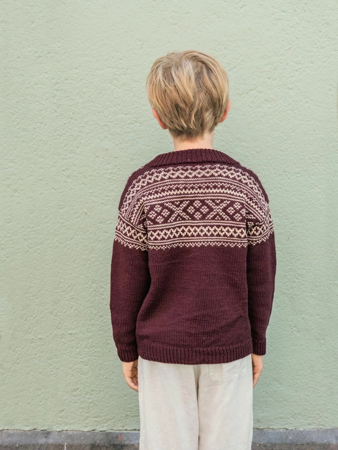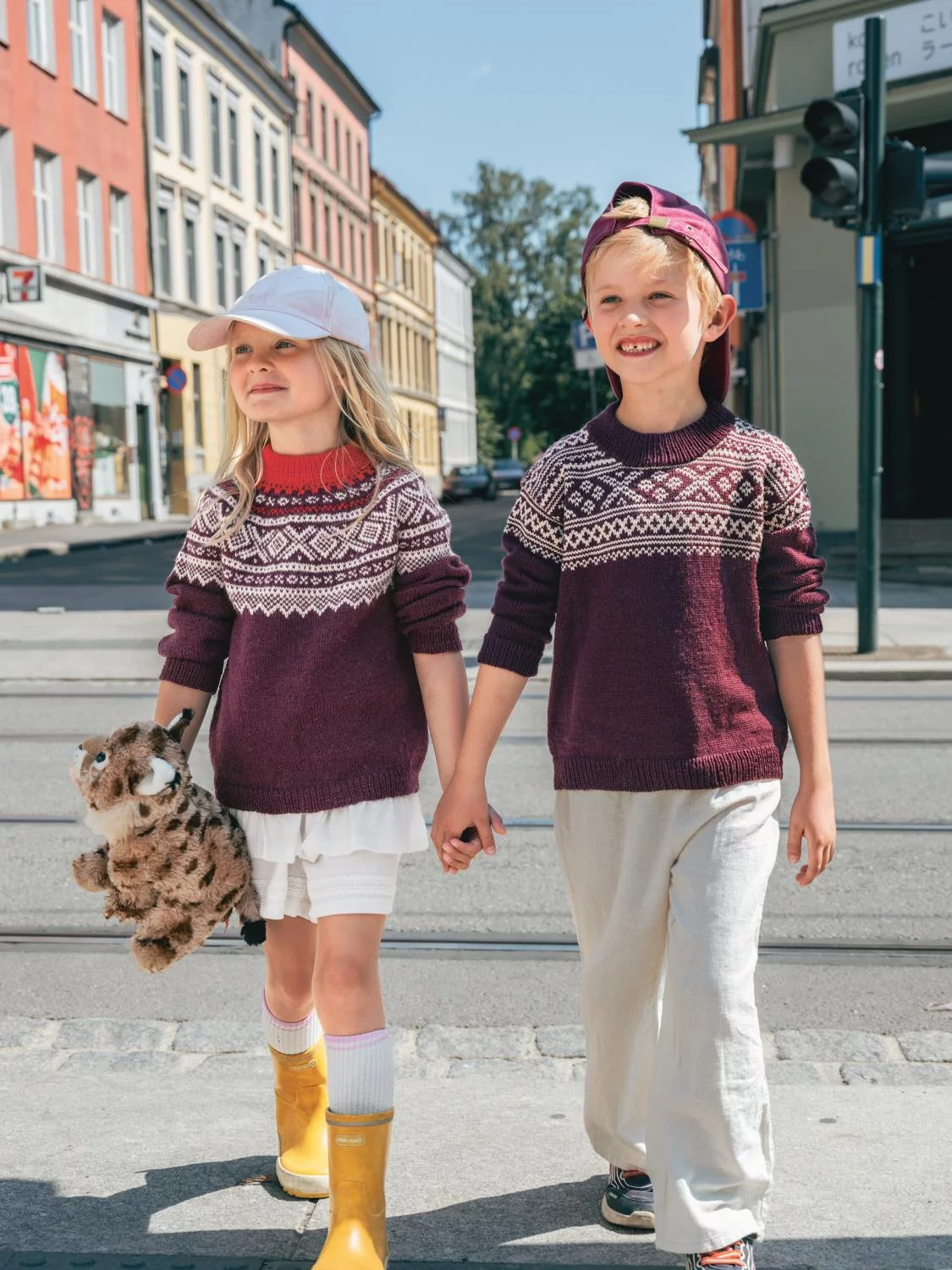 Setesdal genser junior strikkes ovenfra og ned i Babyull Lanett. En klassiker uten lus, med moderne passform og tradisjonelt mønster. Oppskriften inkluderer også varianten i Tynn Peer Gynt nedenfra og opp med lus.