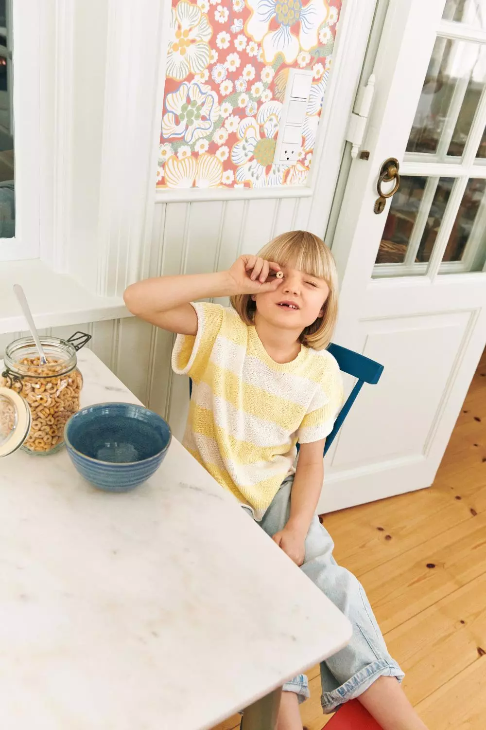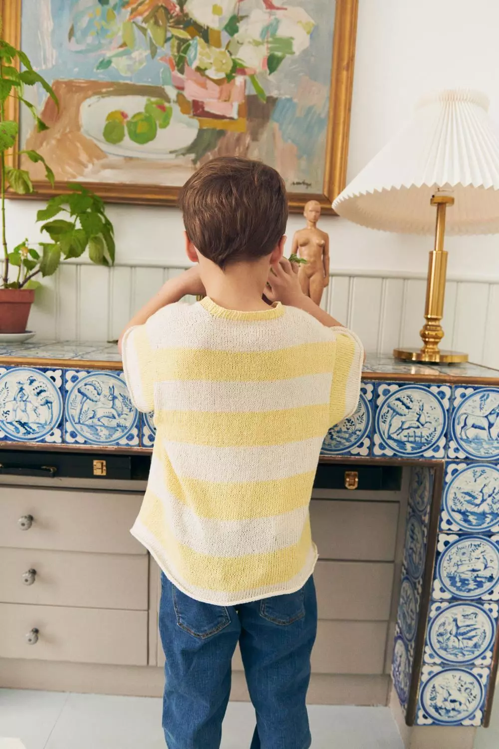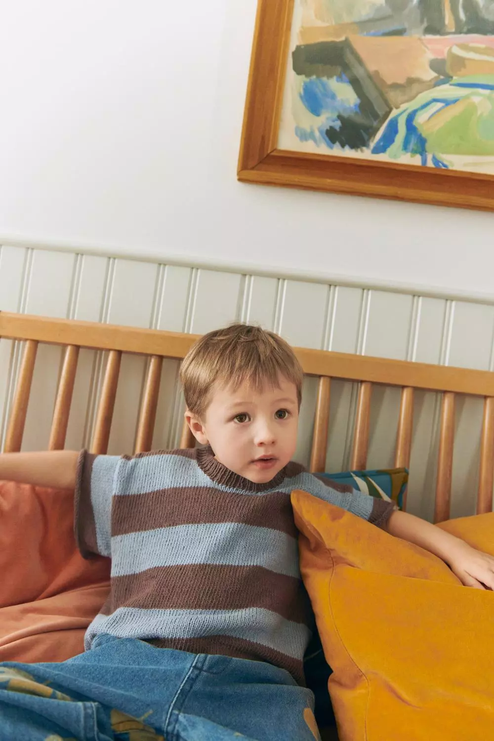 Stripete T-skjorte strikket ovenfra og ned med vendepinner for god passform.