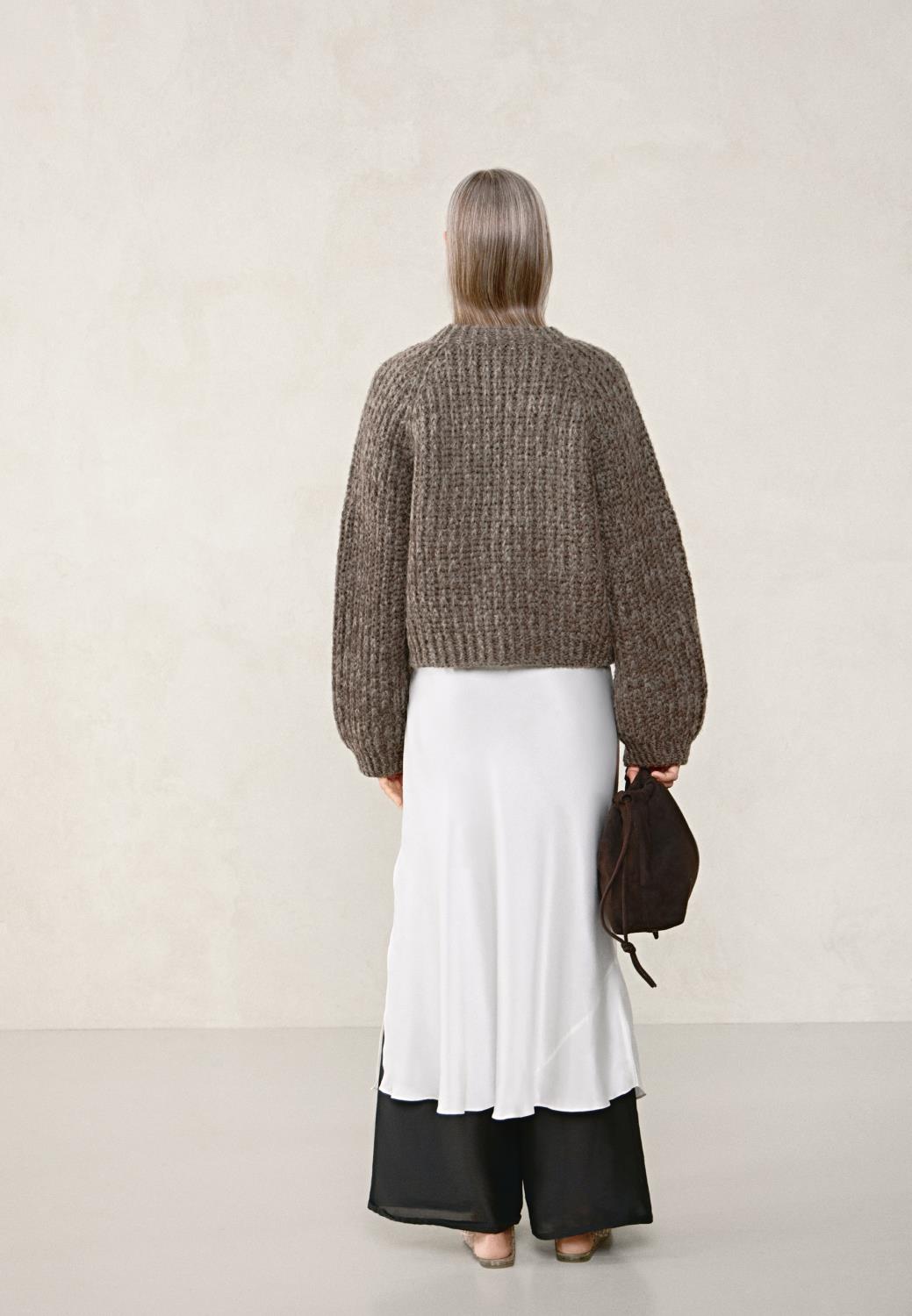 Jakken strikkes ovenfra og ned med økninger til raglan.