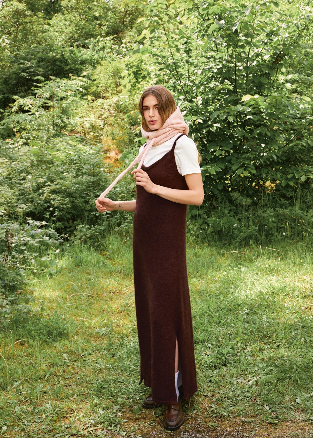 Tie The Hood i Alpakka Ull og Alpakka Følgetråd – et skjerf og en hette i ett, som kan knytes på mange måter etter humør og stil. Strikkes ovenfra og ned med myk luksusfølelse, og er et allsidig tilbehør som både varmer og pynter.